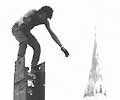 Alex Mayo (Mohawk, Kahnawake) on a column at Second Avenue between Forty-seventh and Forty-eighth Streets, 1971